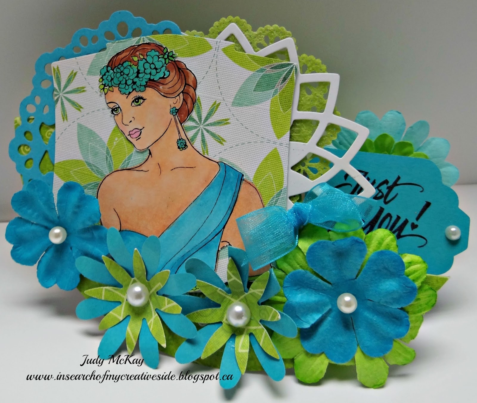 The newest challenge is a step card. I love shaped cards of any kind. I had great fun with this one!